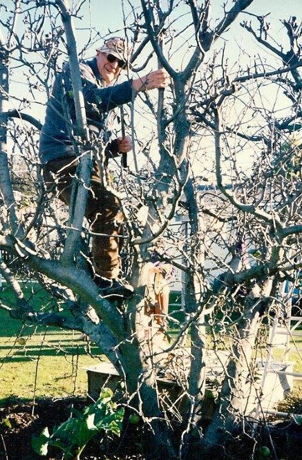 Photo #4 : Walter Gibbons in his unique Plum tree, likely preparing to give it a prune